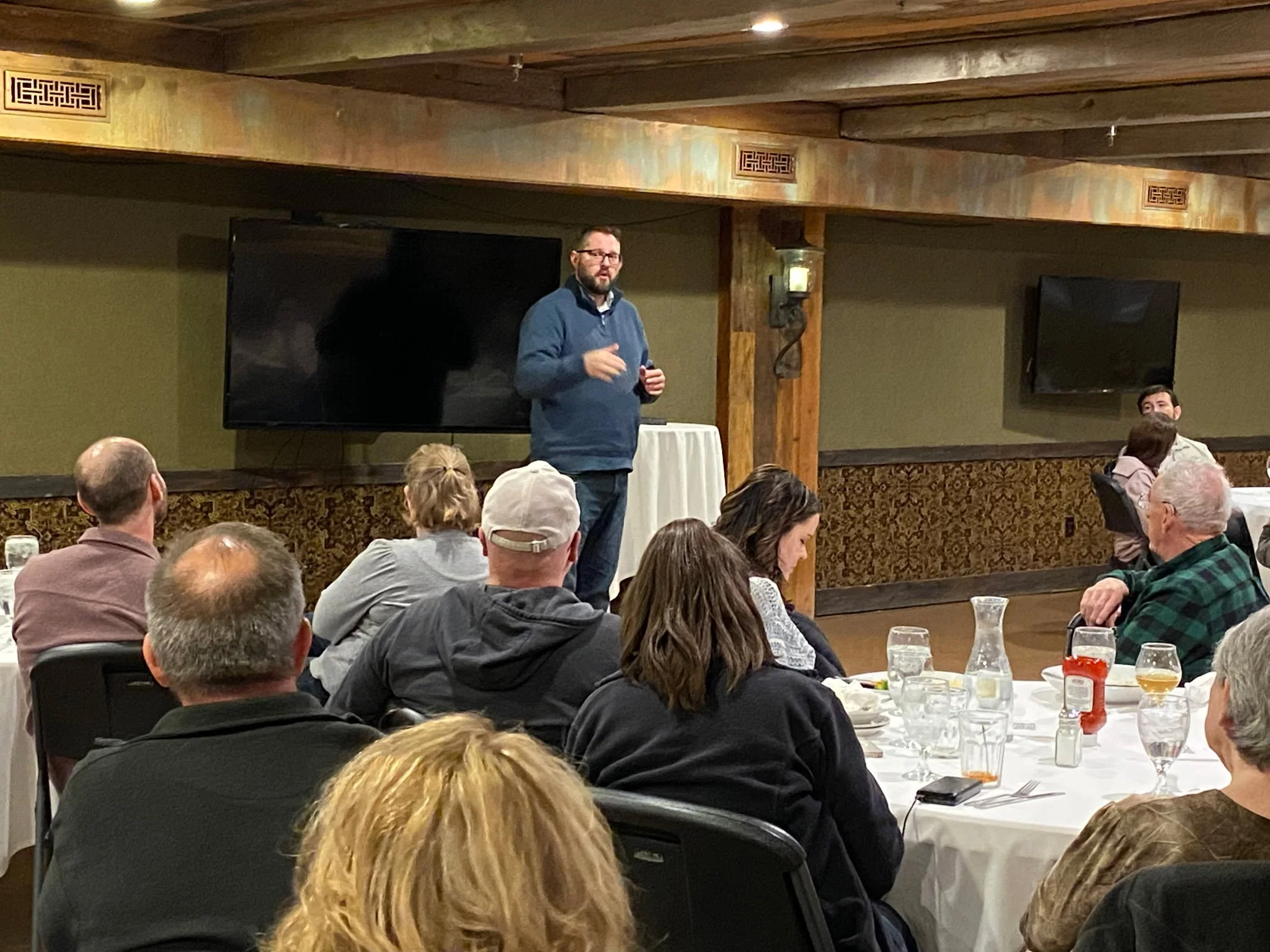 Peter Crosby speaks to members of the Ogden community as a guest of Ogden Dining Liberally. Image provided