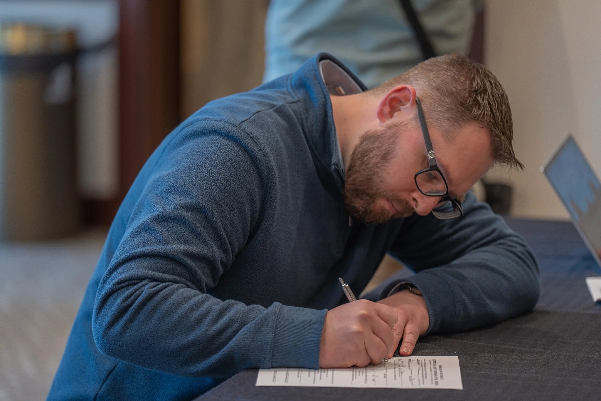 Peter Crosby signs the paperwork to officially run for Congress in CD 2. Image provided